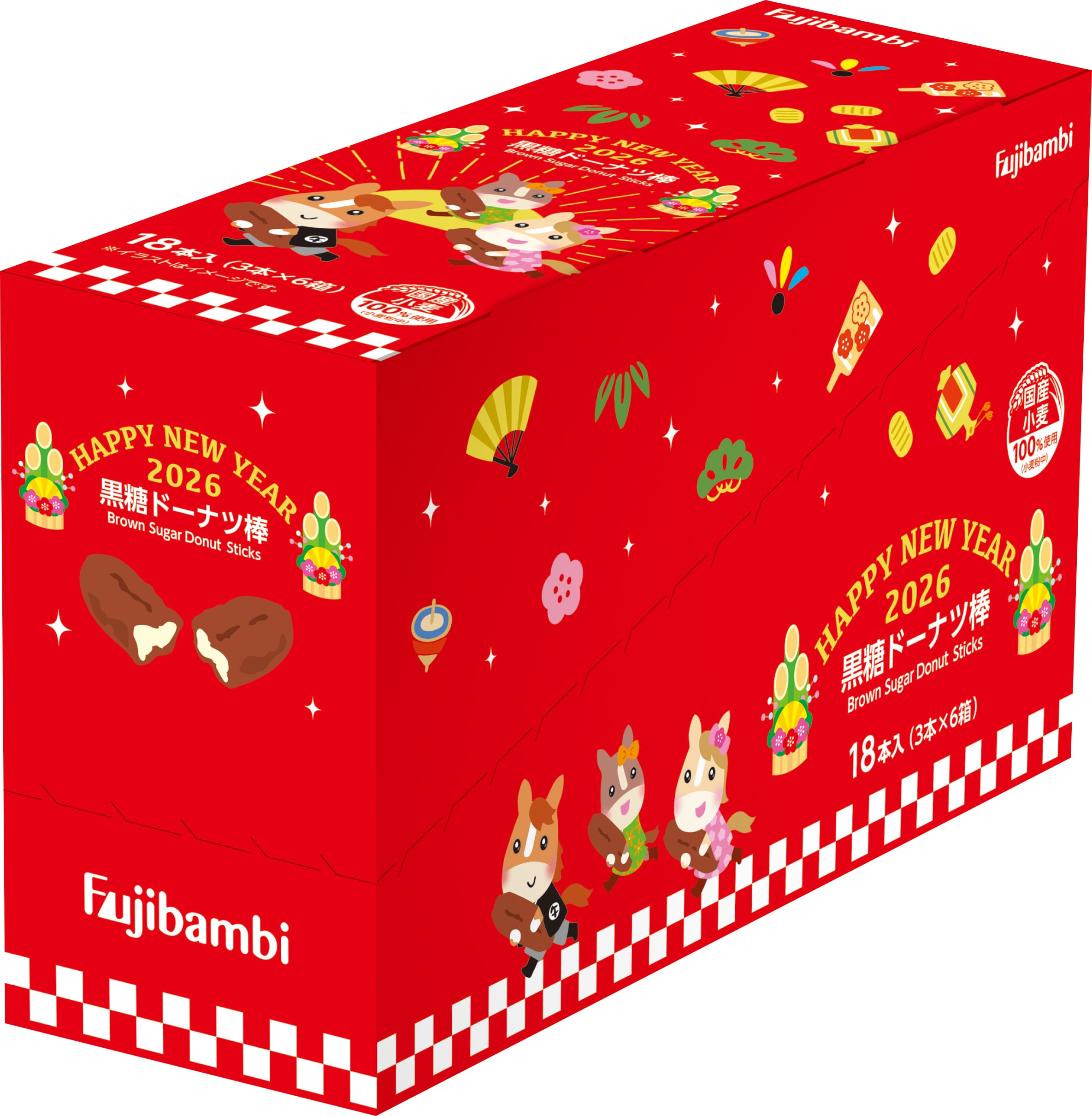 2026パッケージ 黒糖ドーナツ棒3本×6箱